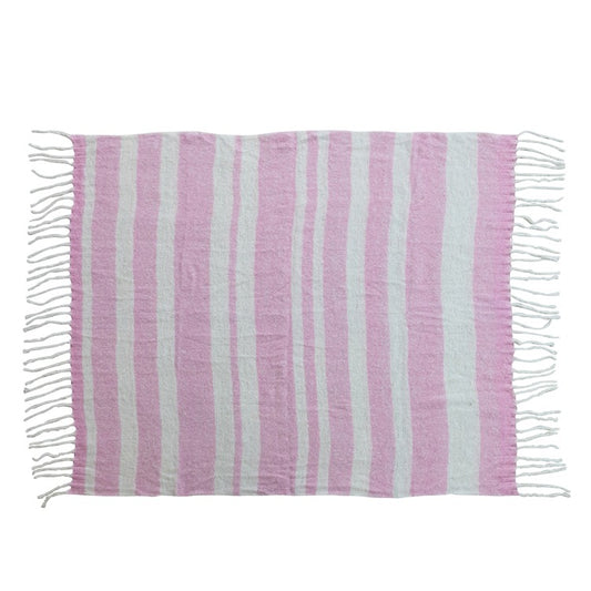 Brushed Acrylic & Wool Throw, Pink & Natural - 60"Lx50"W