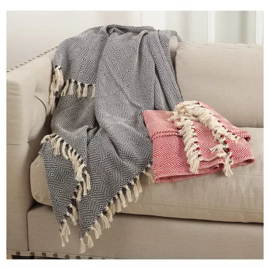 Diamond Weave Throw - Navy Blue 50"x60"
